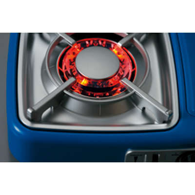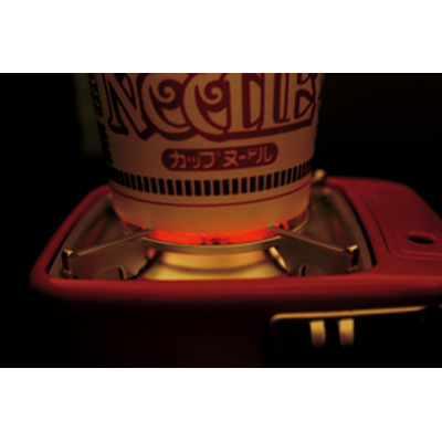 お湯を入れて、コンロに乗せると、ガスの炎の替わりにLEDが赤く光って、タイマースタート、タイマーは3分と4分が選べます。